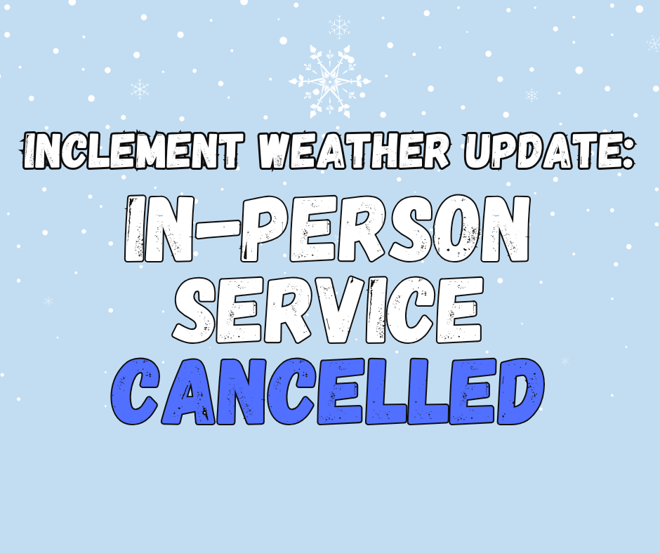 Due to the anticipated inclement weather and snowfall, our in-person service for Sunday, January 25th has been cancelled.